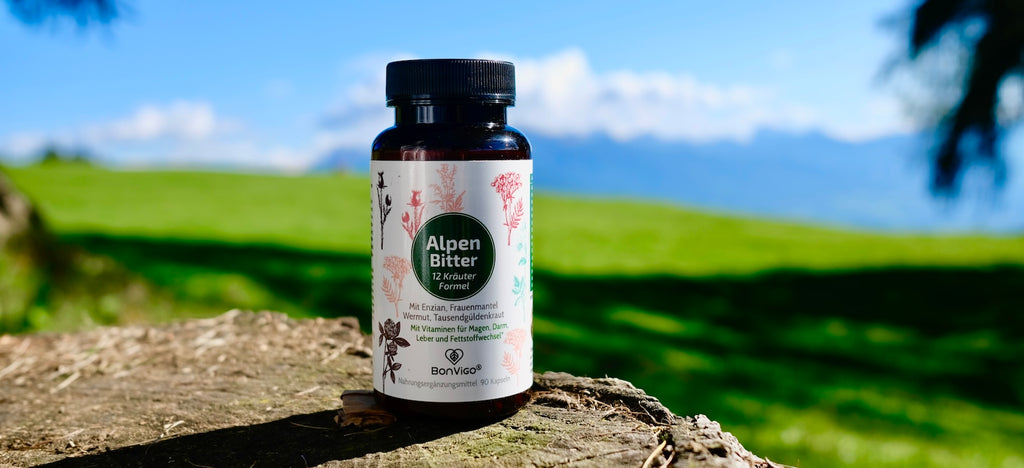 Wir glauben an die Kraft der bitteren Kräuter wie sie vor vielen hundert Jahren schon die geniale Klosterfrau Hildegard von Bingen erkundet und in ihren Rezepten für die Klostermedizin verwendet hat. Wir glauben, dass unser Darm bittere Stoffe braucht. Deshalb haben wir BonVigo® AlpenBitter entwickelt, eine Rezeptur, die neben den für uns unentbehrlichen Kräutern auch das Vitamin Cholin zur Unterstützung von Leber und Fettstoffwechsel enthält. Weil wir auch daran glauben, dass diese Geschenke der Natur das sind, was Menschen heute brauchen. Vielleicht sogar noch mehr als zur Zeit der heiligen Hildegard.
